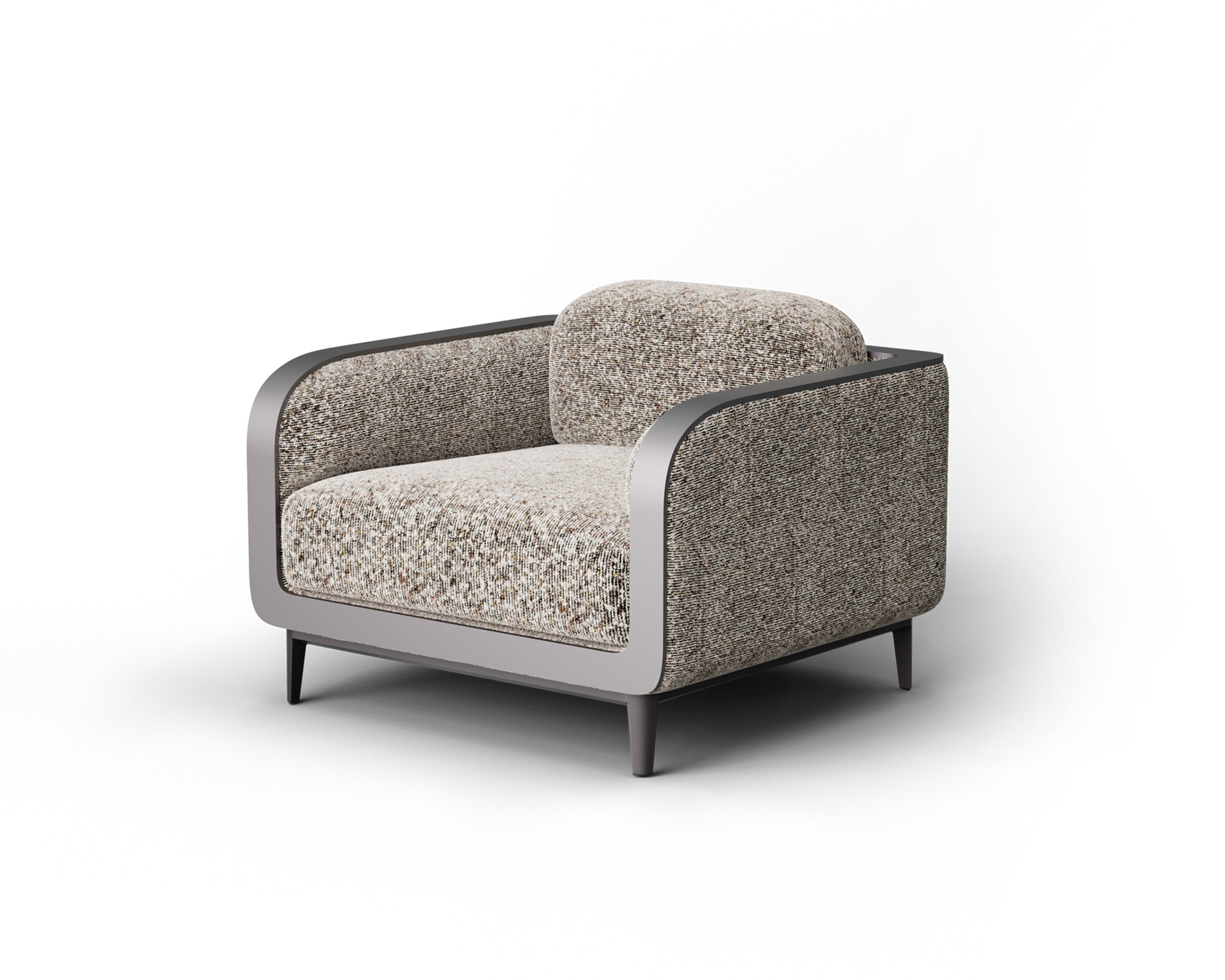 The ARCA armchair is a study in sculptural balance and structural elevation. As a hallmark piece in our Luxury Collection, it reimagines the traditional tub chair through a lens of contemporary architectural precision. The chair is anchored by a substantial midnight ebony frame, featuring four rectilinear legs that create a rhythmic play of vertical lines against the floor.