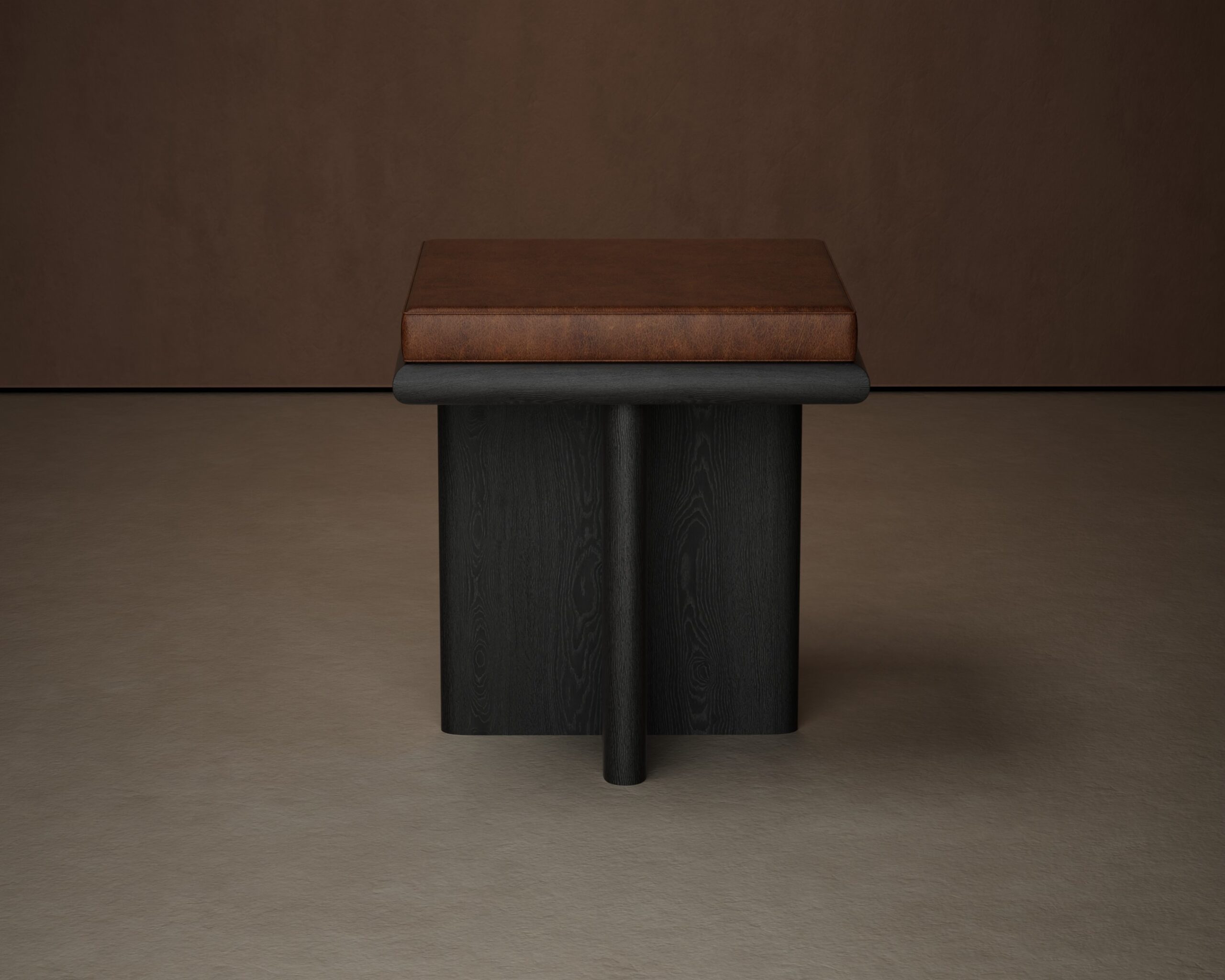 The CANTILEVER center table is a study in geometric tension and architectural poise. Part of our Design Studio Collection, the piece is defined by a primary horizontal surface of earth-toned marble characterized by rich, linear veining. In a display of structural daring, the stone top folds into a single vertical leg at one end, while the opposite side remains suspended, supported only by a recessed matte champagne metallic plane. This interplay of heavy, monolithic stone and slim metallic hardware creates a sophisticated, staggered silhouette that challenges traditional notions of balance.