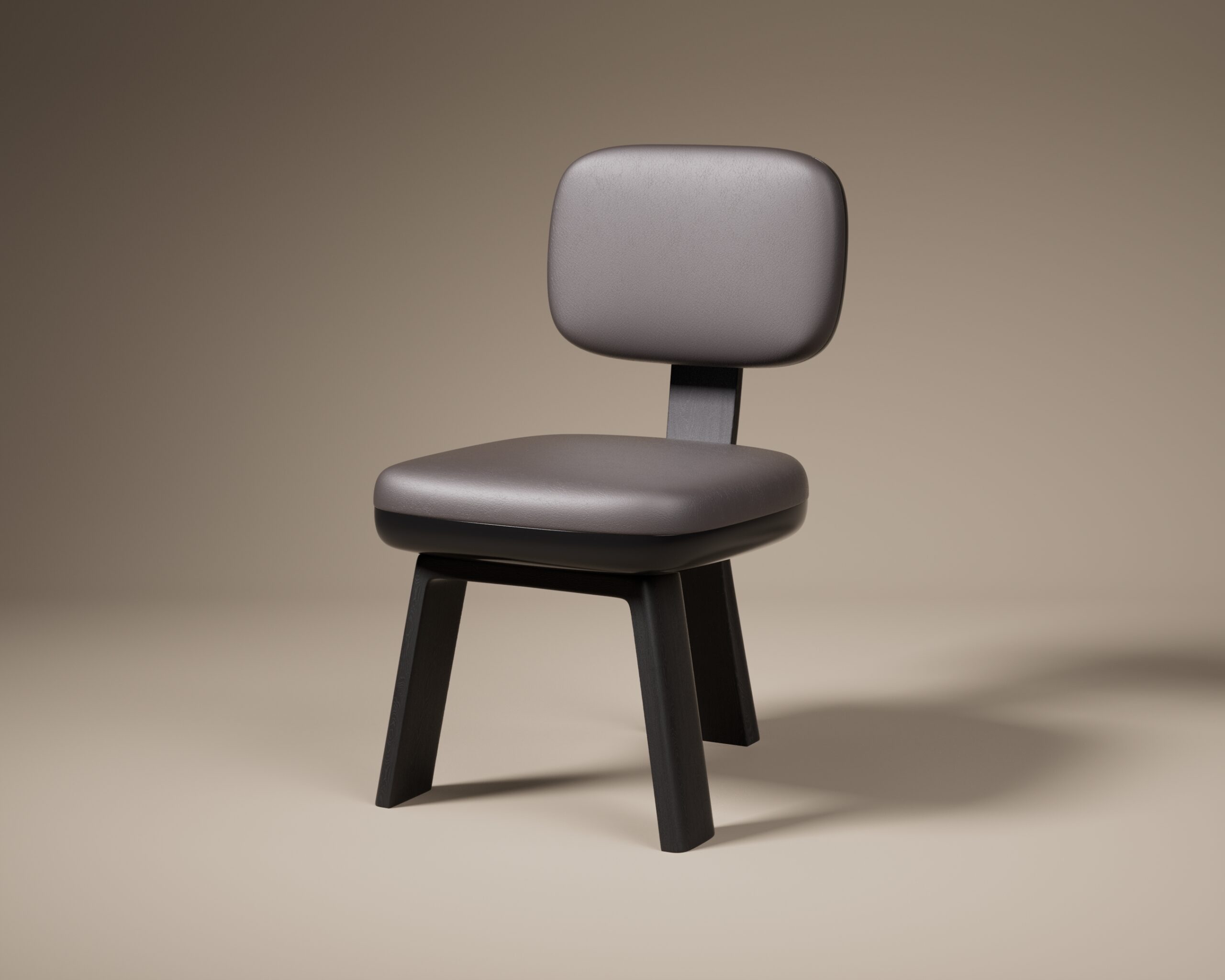 The CIPHER dining chair is a study in minimalist geometry and structural clarity. As a signature piece in our Luxury Collection, it reimagines functional seating through a lens of architectural precision. The chair is anchored by three substantial wooden legs in a charcoal matte finish; two tapered front legs and a singular, monumental rear support that extends upward to form the primary structural spine for the backrest.