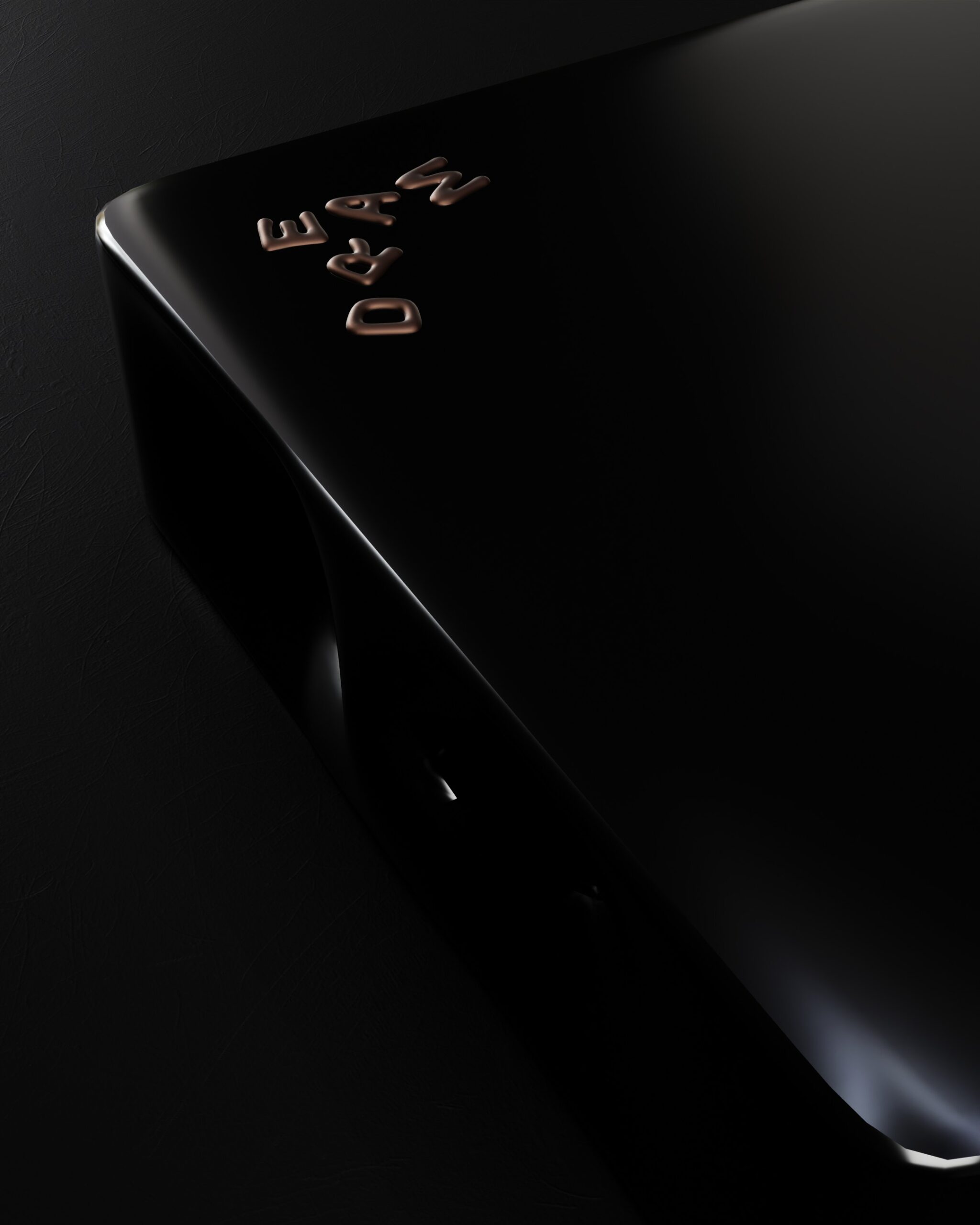 The DREAM center table is a study in surrealist minimalism and fluid, monolithic form. Part of our Design Studio Collection, the piece is characterized by its high-gloss obsidian silhouette, featuring a seamless surface that flows into a base defined by deep, organic undulations. The design is punctuated by refined polished copper accents in the form of playful, scattered typographic letters that appear to float across the table’s corner, balancing the piece’s heavy, architectural weight with a sense of poetic whimsy.