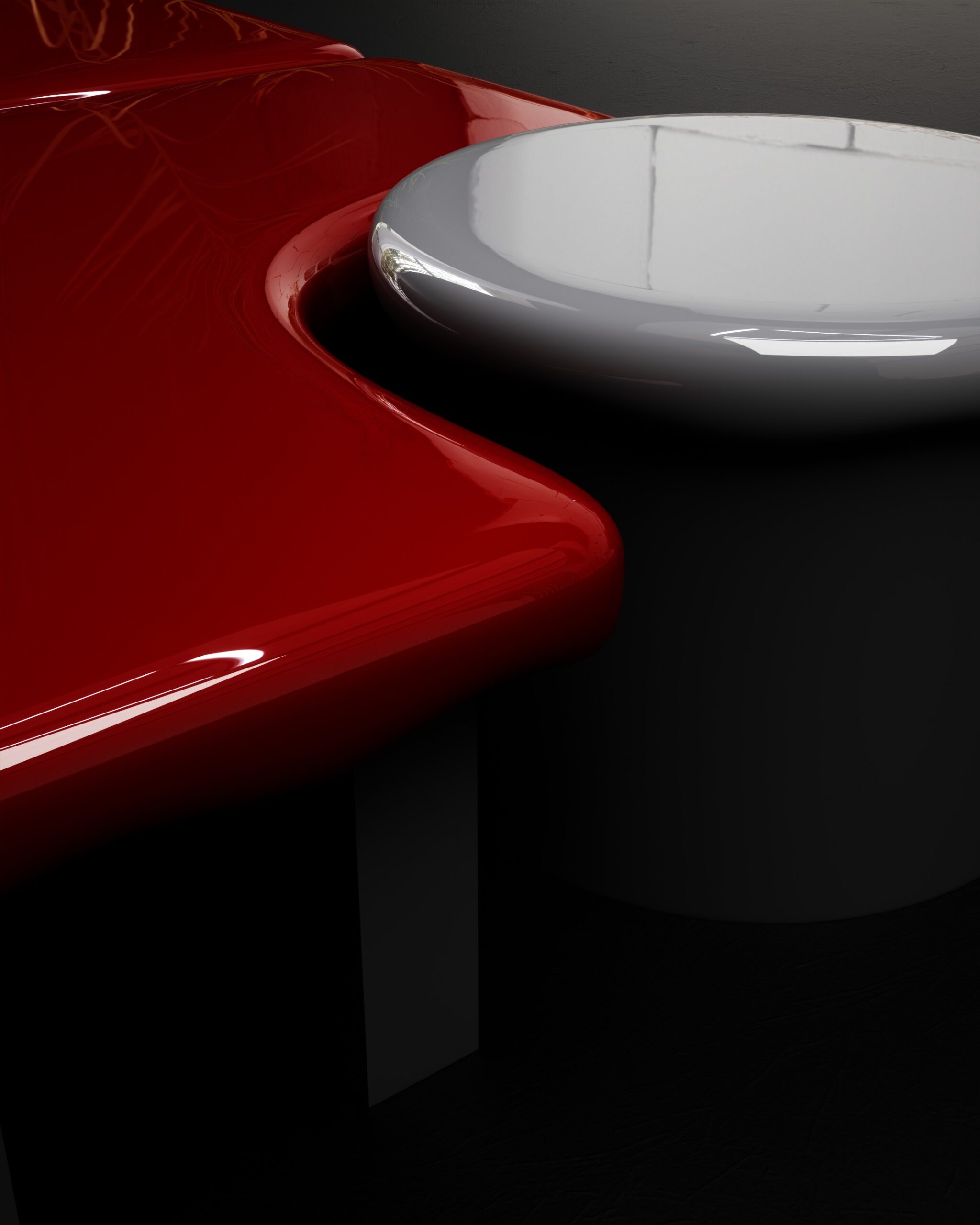 Reinforced architectural concrete, cast metallic alloy, high-gloss polymer
