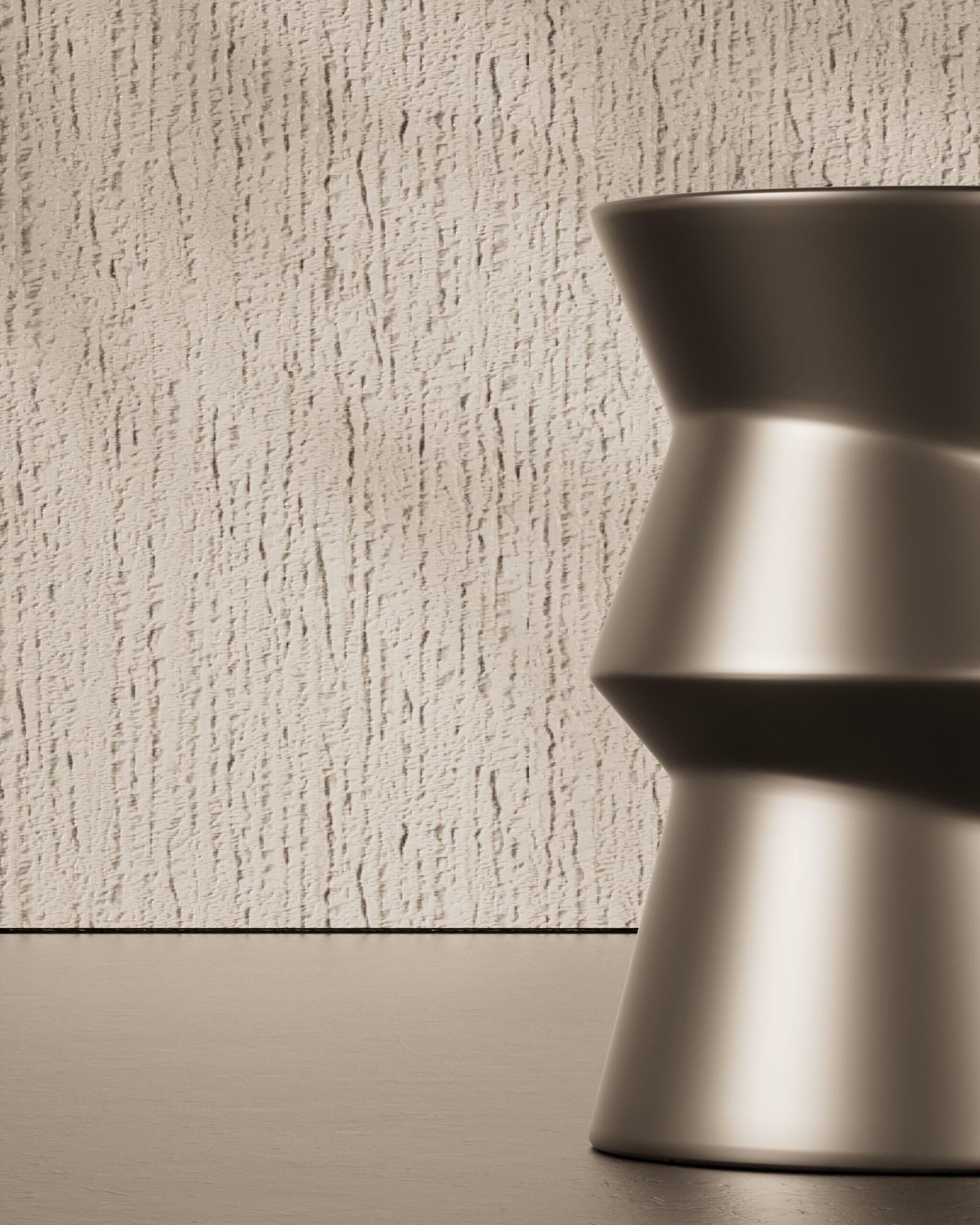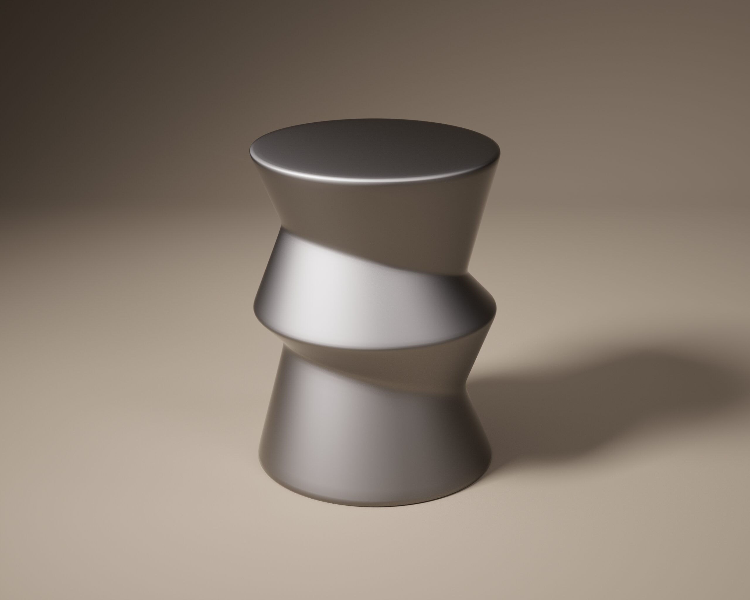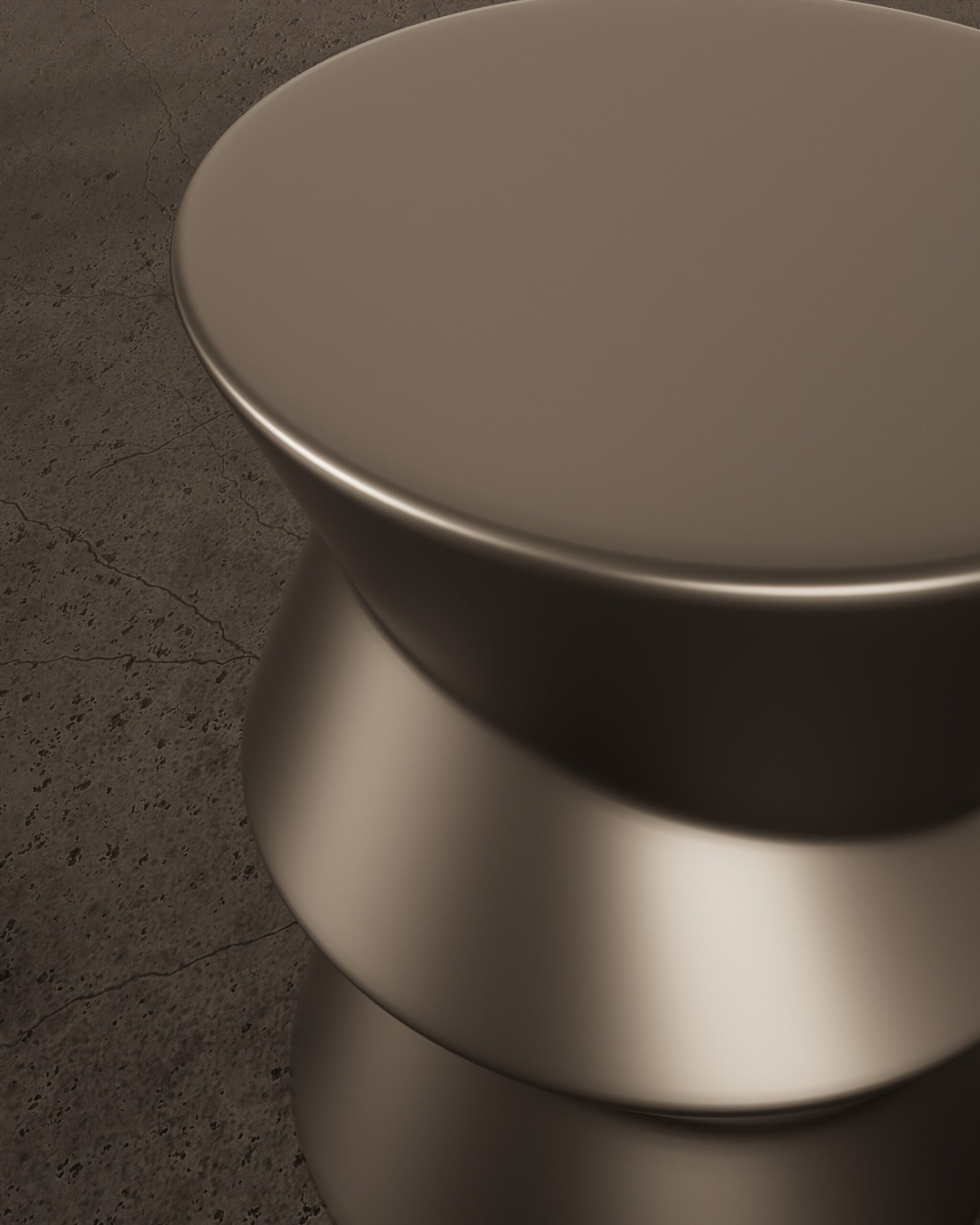 The GROTTO side table is an exploration of dynamic torque and architectural stability. Part of our Design Studio Collection, the piece is defined by its fluid, rotating form that appears to spiral upward from a circular base to an integrated circular top. The design narrative is driven by three distinct, stacked sections, each shifted on its axis to create a “twisted” silhouette with sharp, rhythmic edges and soft transitions. Finished entirely in a uniform matte champagne, the table’s surface captures a soft gradient of light across its complex facets. The GROTTO balances a heavy, monolithic presence with the energy of motion, serving as a sophisticated and sculptural accent for contemporary living spaces and galleries.