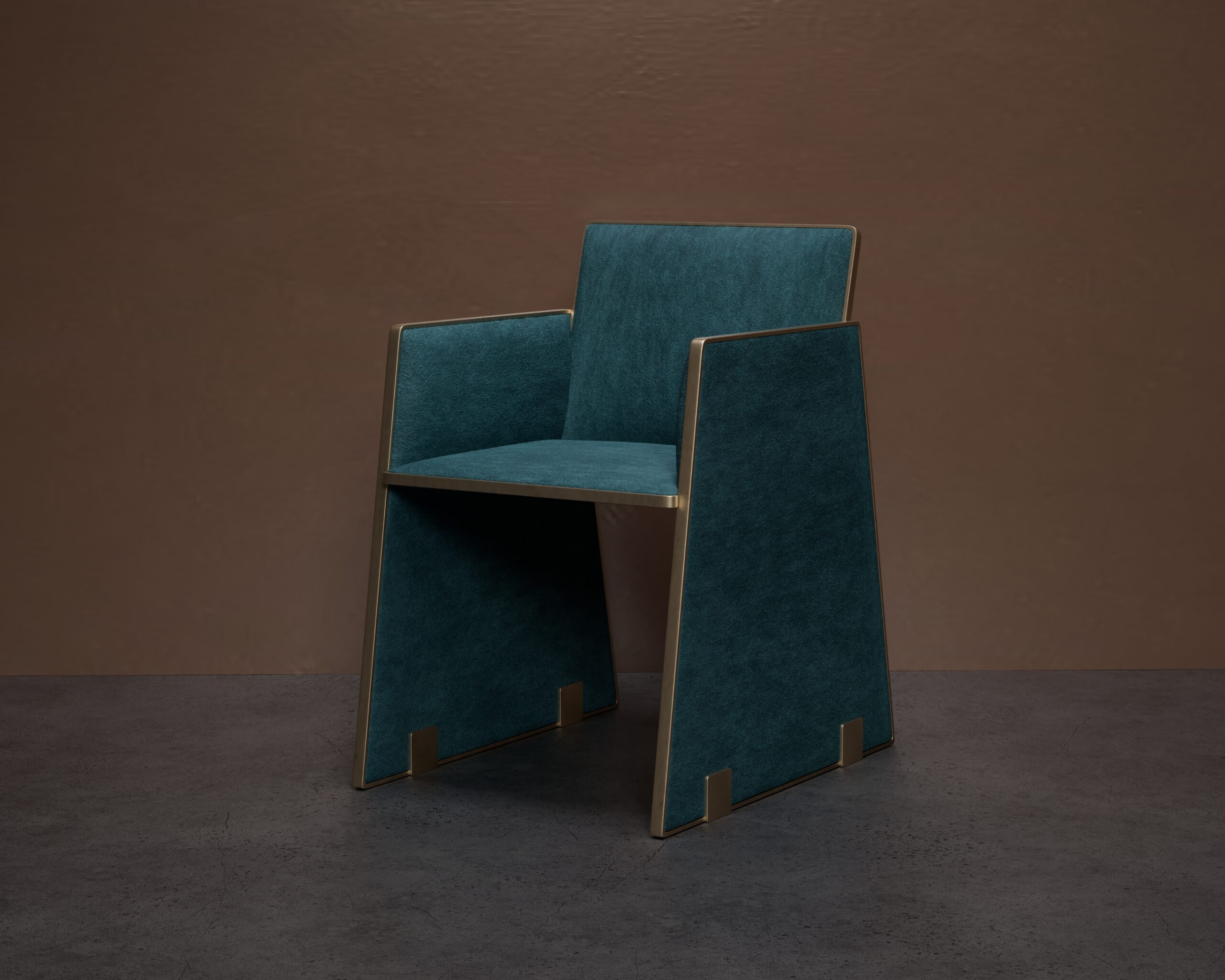 The MARLOWE dining chair is a study in angular precision and jewel-toned luxury. Part of our Design Studio Collection, it features a rigorous, architectural form upholstered in a rich forest green velvet. The chair is defined by its satin brass frame, which outlines the sharp, tapered geometry of the legs and backrest. This metallic “skeleton” is punctuated by signature square-notch details at the base, creating a sophisticated interplay between soft, tactile surfaces and a rigid, industrial foundation.