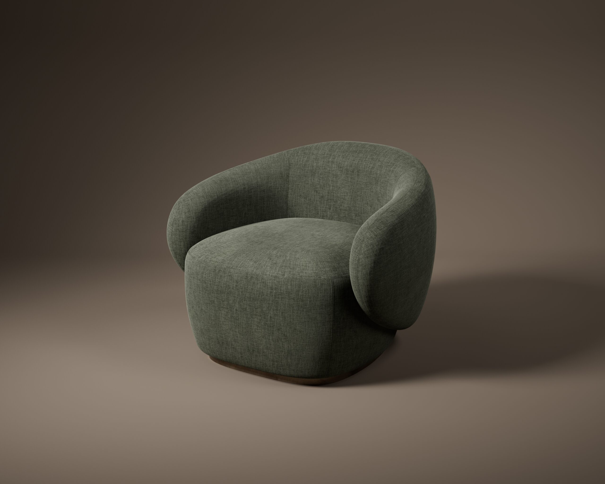 The visual narrative is driven by the contrast between the rigid, dark frame and the deep, textured seating volume. Clad in a premium warm charcoal weave, the thick rectilinear seat and integrated low-profile backrest appear to float within the metallic chassis. Subtle design details, such as the rounded internal radius of the frame and the sharp, tailored upholstery edges, highlight the chair’s sophisticated artisanal craft. The MERCER balances its bold material presence with a refined visual lightness, serving as a commanding and ergonomic focal point for high-end residential lounges and modern executive offices.