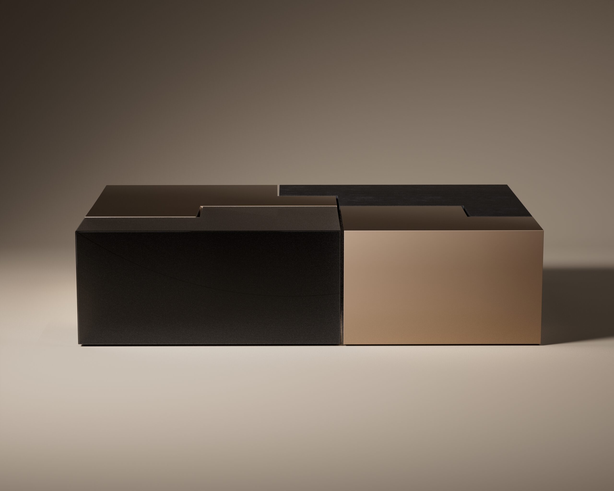The PUZZLE center table is a study in geometric interlocking and tonal hierarchy. As a signature piece in our Luxury Collection, it reimagines the traditional coffee table as a precise architectural assembly of distinct parts. The design is defined by its four massive, L-shaped blocks that fit together with zero-tolerance joinery, creating a rhythmic play of light across its staggered elevations. Each quadrant features a unique finish—ranging from matte black and champagne gold to a deep textured charcoal—providing a sophisticated material contrast that highlights the piece’s complex construction. The PUZZLE balances its substantial, grounded volume with the sharp precision of industrial milling, serving as a bold and cerebral focal point for modern residential lounges and gallery spaces.