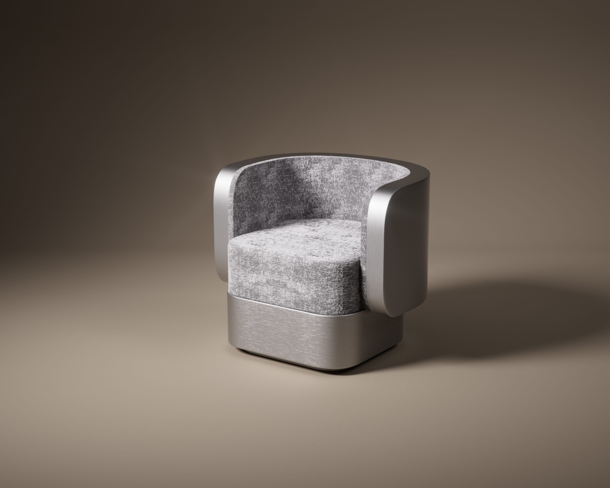 The visual narrative is driven by the contrast between the rigid, dark frame and the plush interior volumes. Upholstered in a premium cloud cream bouclé, the deep circular seat and the low-profile backrest provide an enveloping ergonomic embrace. A distinctive design detail is found in the “suspended” effect of the backrest, which is nested within the wooden frame to create a sense of lightness despite the chair’s monumental materiality. The RIBBON balances its bold architectural lines with sophisticated tactile warmth, serving as a commanding focal point for high-end residential lounges and modern executive offices.