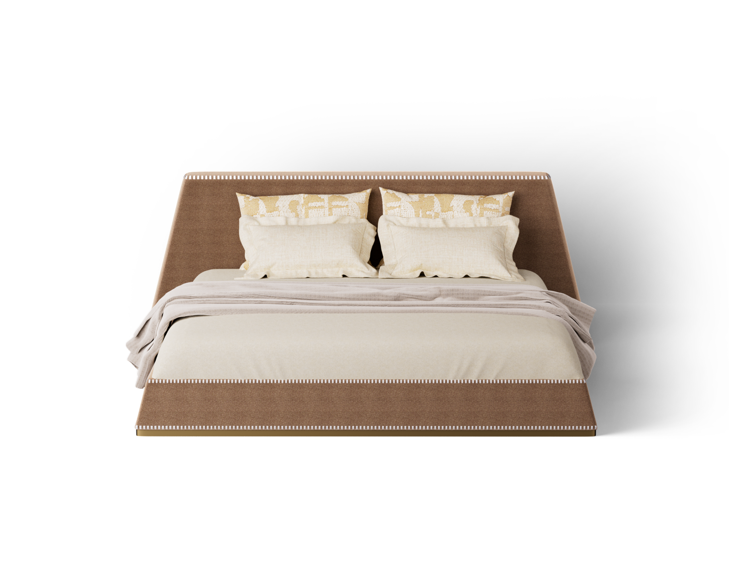 The STACK bedside table is a study in rhythmic repetition and tectonic layering. It features a substantial dark walnut drawer unit that rests atop a dramatic, horizontally fluted pedestal, creating a textured interplay of light and shadow. The design is grounded by an ultra-slim brass base, while the top features a protective inset tray and a minimalist, pill-shaped brass pull, offering a refined, architectural presence that balances bulk with delicate metallic accents.